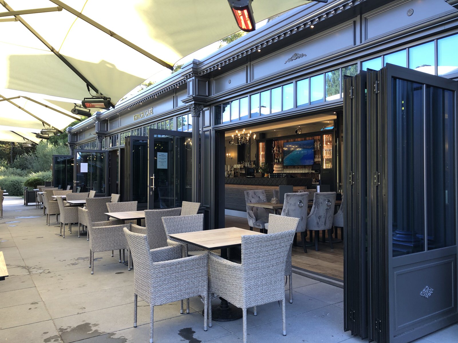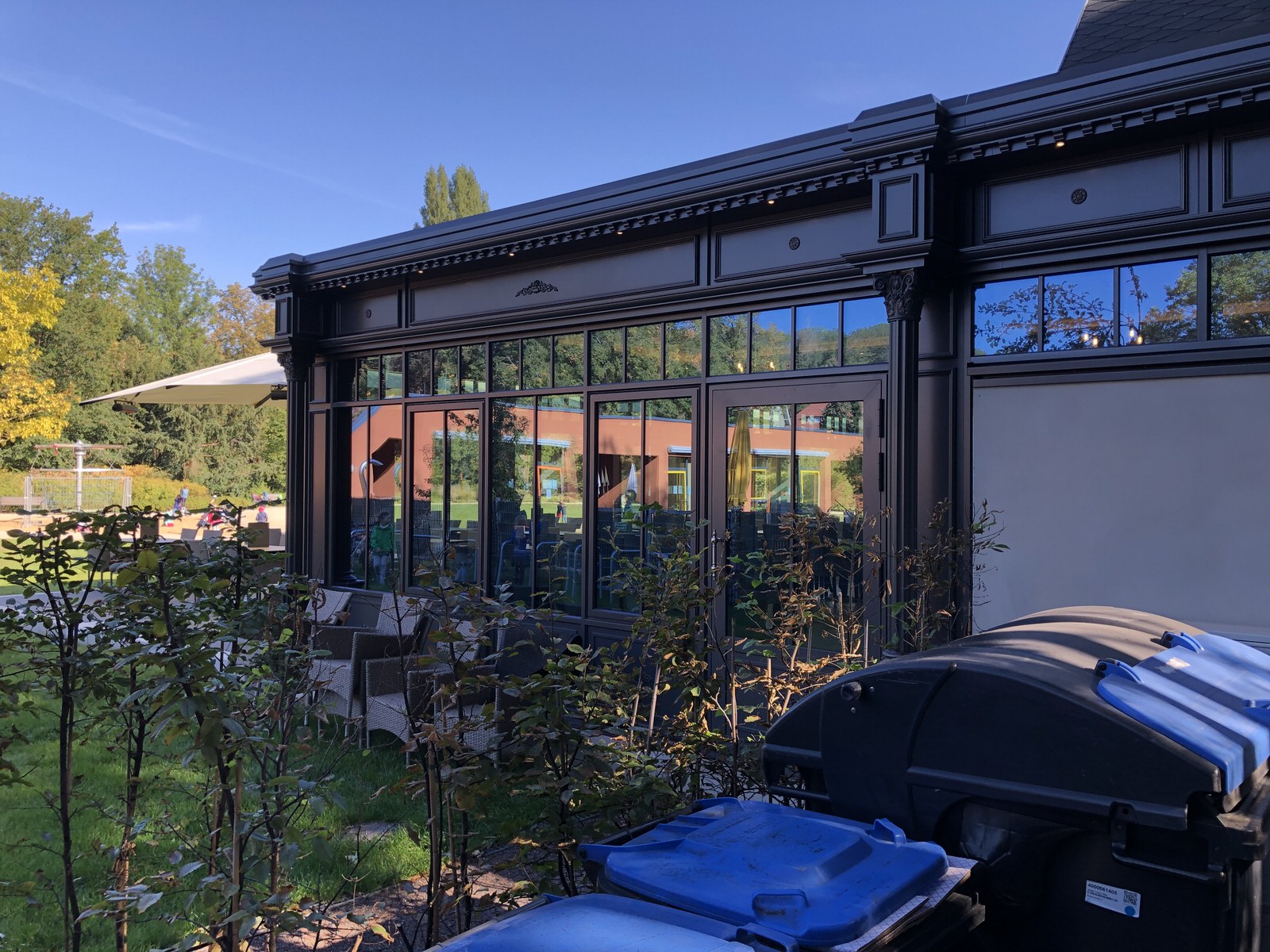 Ein neu gestalteter Wintergarten öffnet sich hin zu einer großen Sonnen-Terrasse. Durch unser Unternehmen wurden die komplette Kältetechnik, eine moderne energiesparende Küchenzu- und Abluftanlage, die komplette Klimatisierung der Gasträume, sowie eine moderne Heizungsanlage als Wärmepumpe ausgeführt. Alles energiesparend und umweltschonend.
